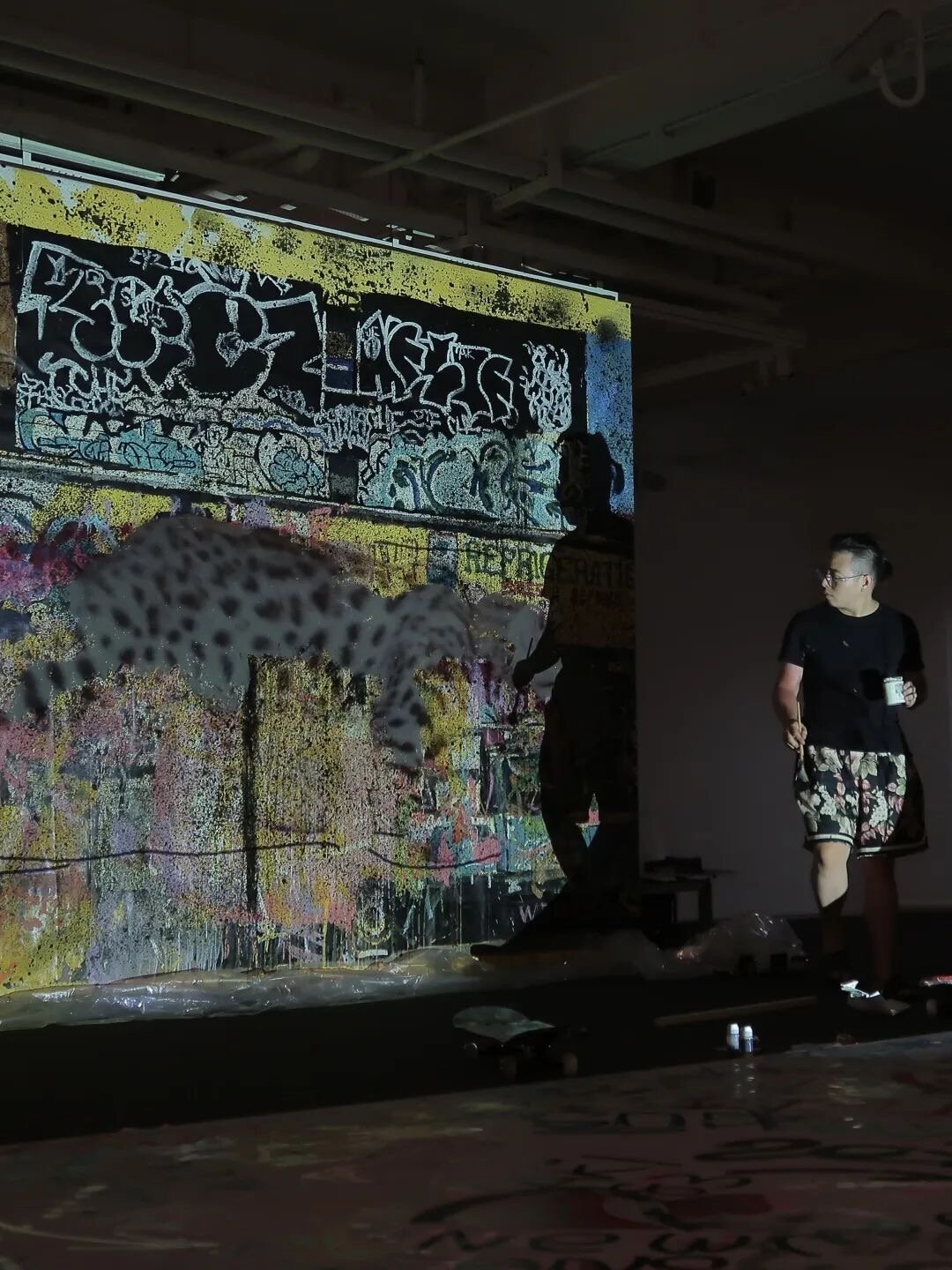 Roy XR Chen is deeply intrigued by the interplay between the sense of incompletion and dilapidation of ancient murals caused by the force of nature and traces of human intervention. His works depict scenes of post-human civilization. There are streets, walls and toilets, all with human traces, but not a single human figure. In these scenes, graffiti is the only non-industrial mark left by human beings. Viewers become both the observers of and pedestrians on these streets. Roy XR Chen sees graffiti as a modern form of mural painting that has emerged since the last century. With the development of industry and urban construction, graffiti start to be seen on surfaces other than walls, for instance, toilets, vehicles, garbage cans and skateparks. In ancient times, to make recordings was a main purpose of mural. Nowadays quite likewise, graffiti has also turned out to become a medium to witness and record the ongoing urban and community cultures. The graffiti and surfaces where they are presented collectively define the "Wild Walls".